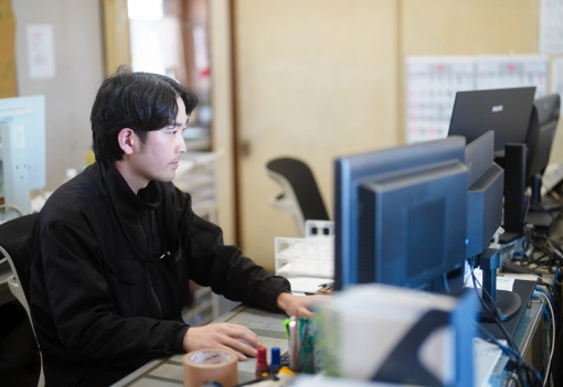 事務所では主に、管理課が受発注やお客様とのやり取りなどの業務を行います。