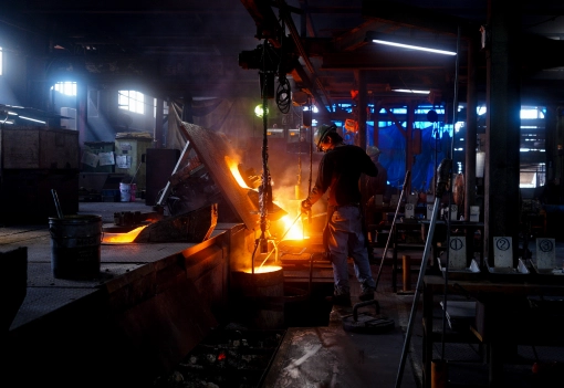 約1400°Cの熱い鉄を扱うので、工場内は少々暑さがありますが、開けているので風通しが良い現場になっています。